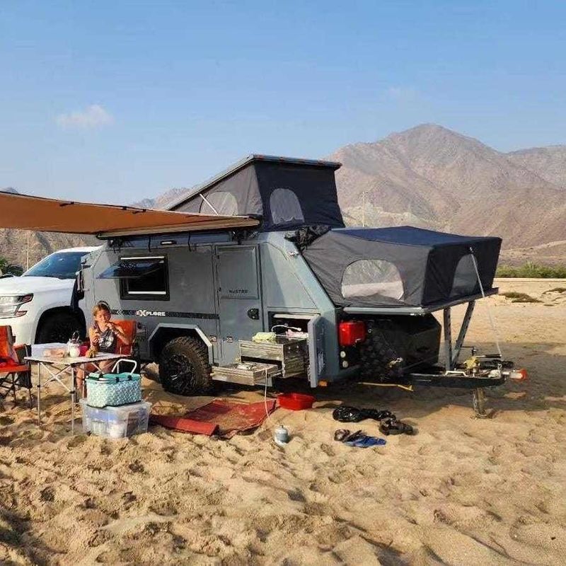 Đưa ra xe thám hiểm ngoài đường: bạn đồng hành tuyệt vời của bạn trên đường ngoài đường.cung cấp độ bền và tính linh hoạt vô song cho những cuộc phiêu lưu ngoài lưới điện của bạnĐược chế tạo với độ chính xác từ các vật liệu nhôm cao cấp, Offroad Trailer Explorer được xây dựng để chịu được địa hình khắc nghiệt nhất trong khi cung cấp sự thoải mái của nhà bất cứ nơi nào chuyến đi của bạn đưa bạn.